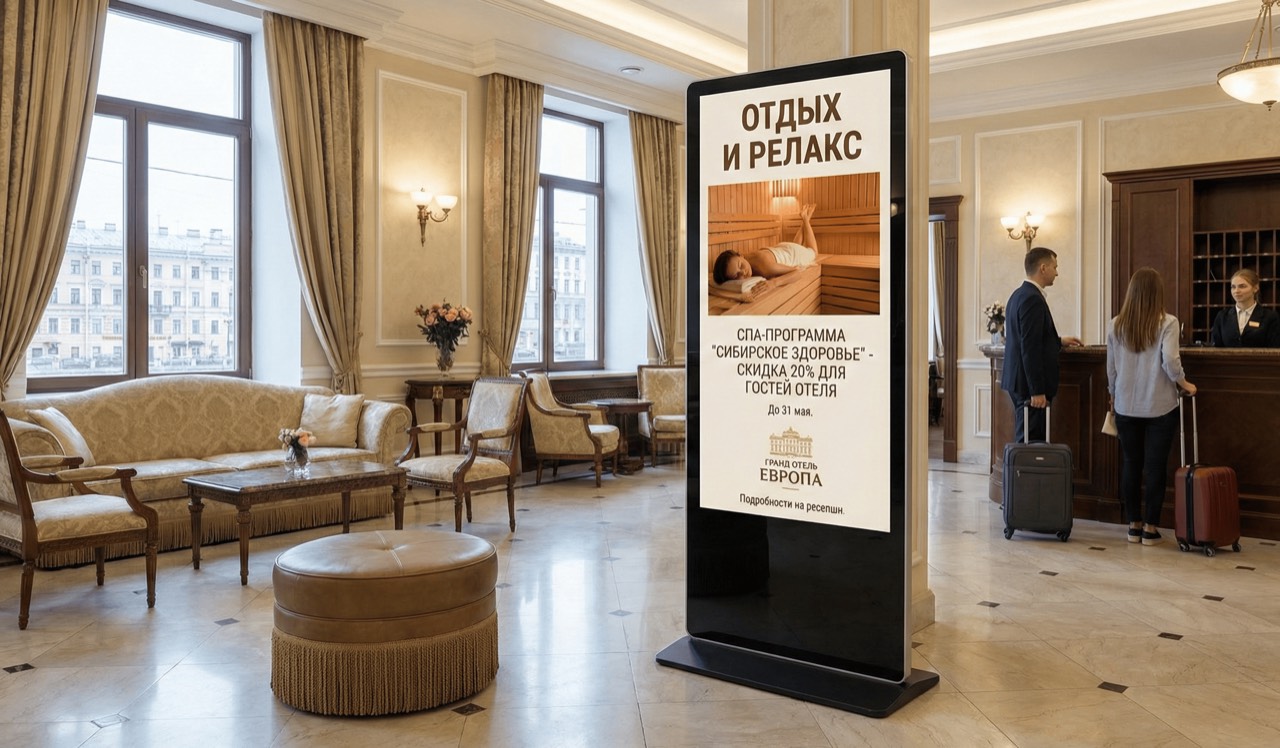Рекламируйте спа, рестораны, экскурсии и специальные предложения прямо на цифровых экранах.